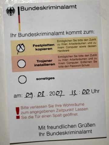 Diese und weitere Fragen jetzt aktuell in unserer grossen Volkszählung. Der Bundestrojaner ... Videoüberwachung ... Kopftuchverbot ... Spitzel 2.0 ... Datenspeicherung ... Onlinedurchsuchung ...